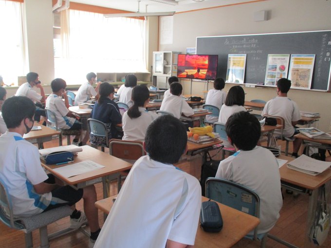 北方領土エリカちゃん Hoppou Erika 山梨県の南部中学校では 色丹島民の体験をもとにしたアニメ映画 ジョバンニの島 の上映会を開催したッピ 生徒はアニメを鑑賞した後 パネルを見て更に北方領土問題の理解を深めてくれたッピ みんな 真剣に考えてくれて